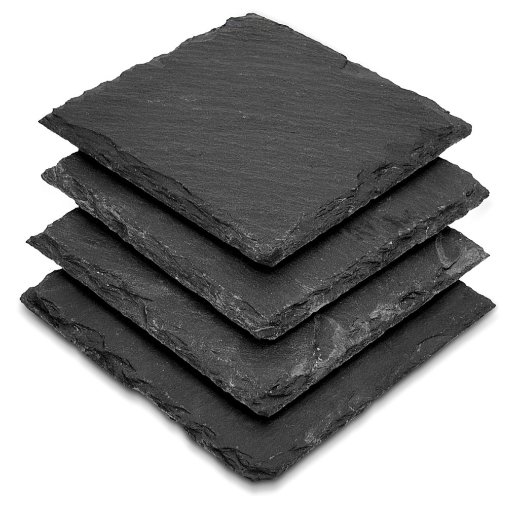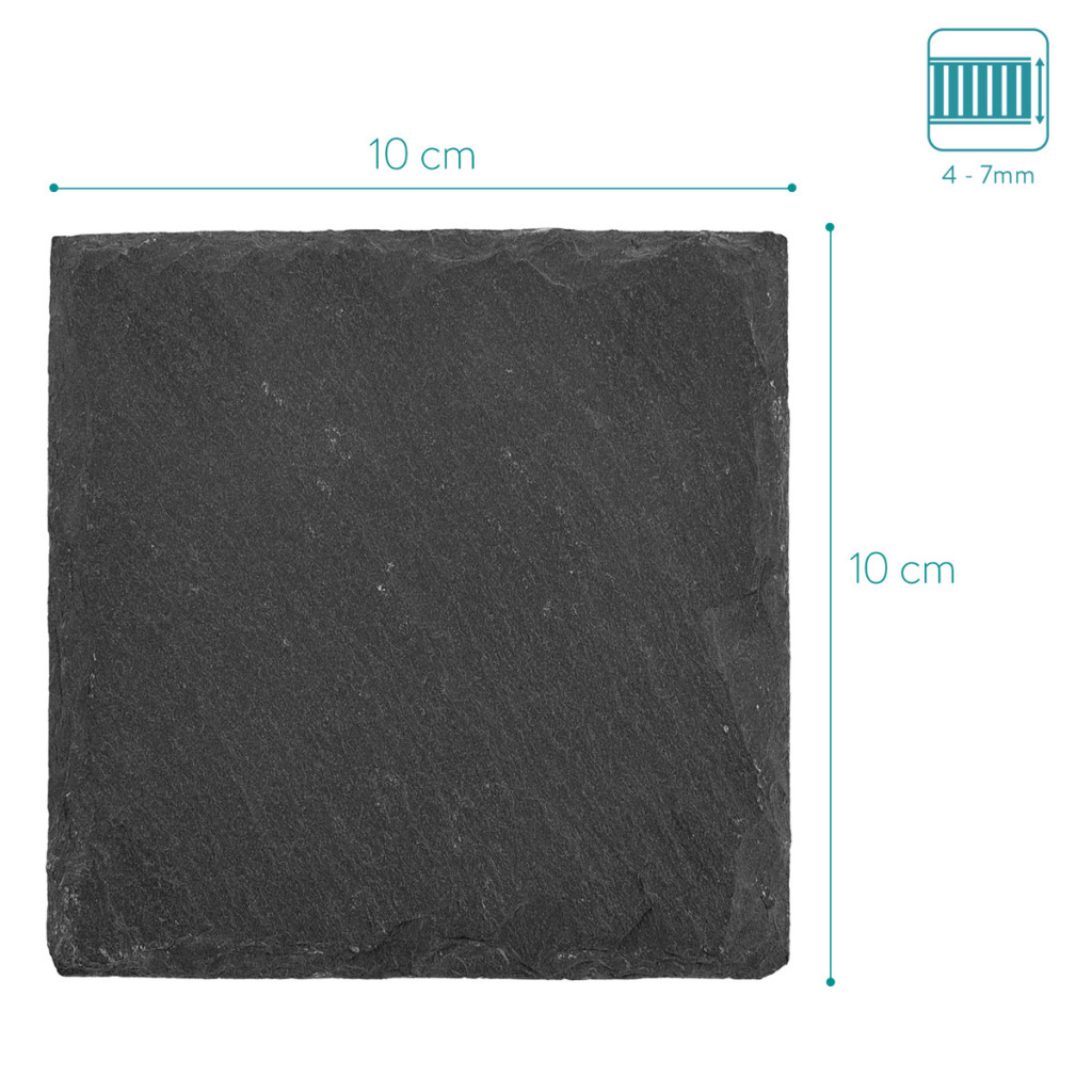 Set 4 suporturi pahar Navaris, 10x10 cm, personalizabile cu creta, gri antracit, gri, ardezie