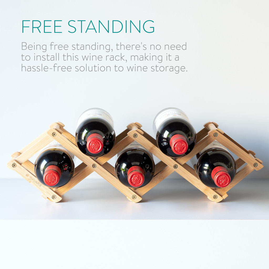 Suport bauturi din bambus Navaris, 5 sloturi, pliabil, 45x12x15.2 cm, negru, bambus