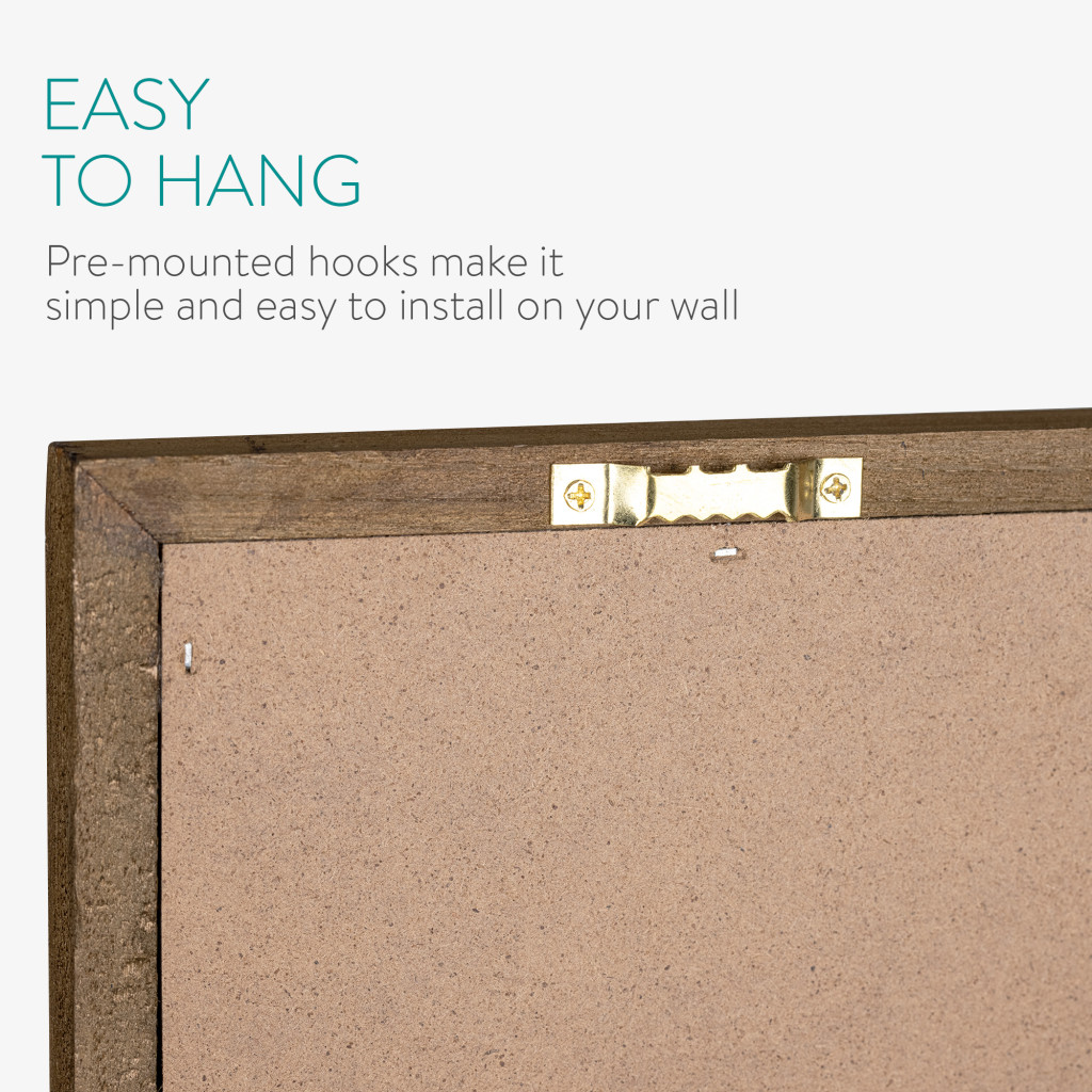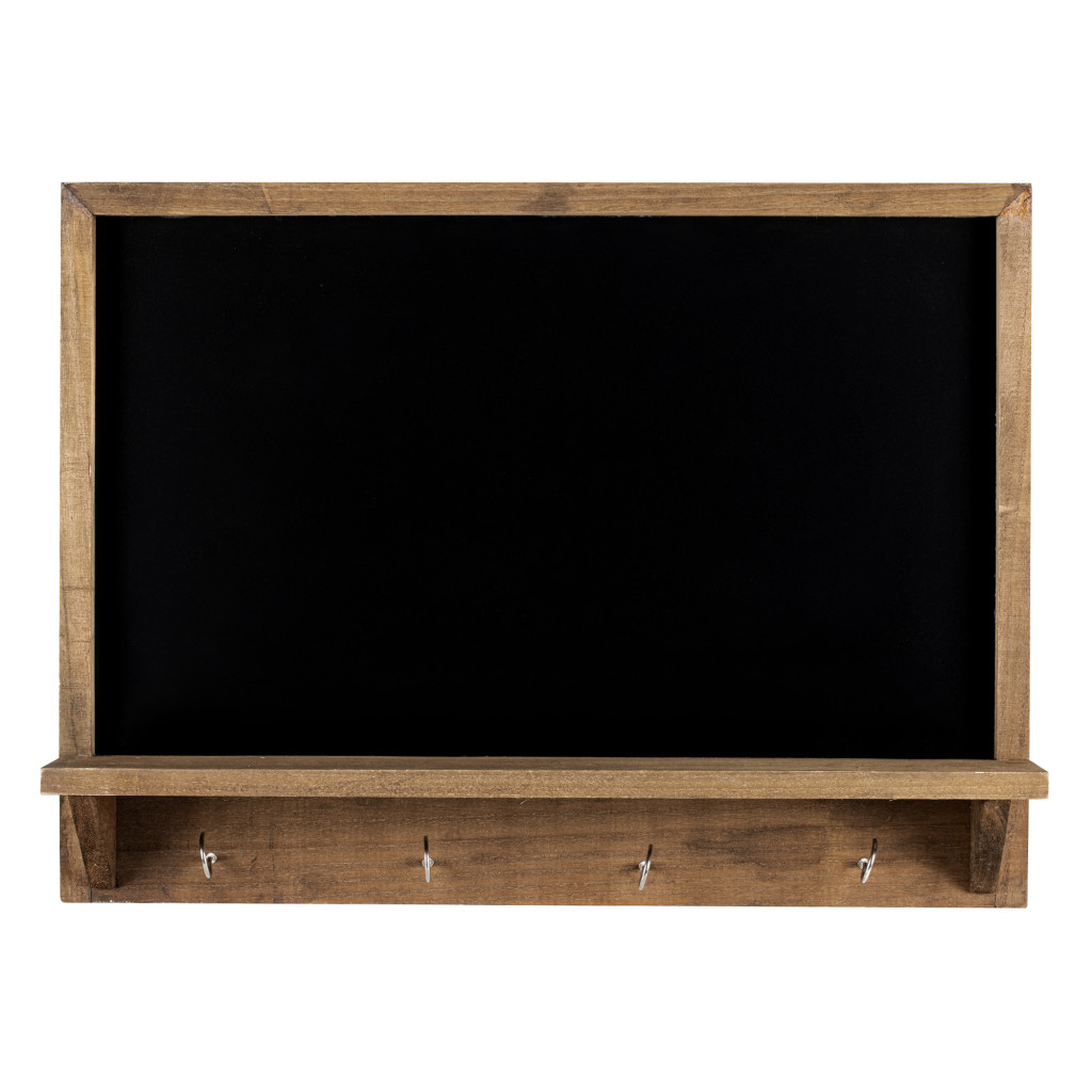 Tabla cu rama vintage Navaris, 60x45 cm, 4 carlige si polita, cu creta, negru, lemn