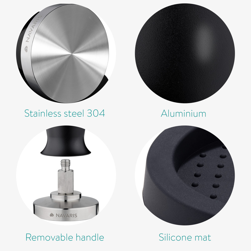Přídavek s hliníkovou rukojetí dotek elegance tohoto pěchovadla na kávu od Navaris. Je to skvělý doplněk, který dodá vašemu domácímu vybavení nádech současné elegance.