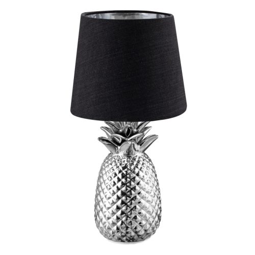 Lampa de masa Navaris, design ananas, 35 cm, abajur opac, E27, negru/argintiu, ceramica/metal