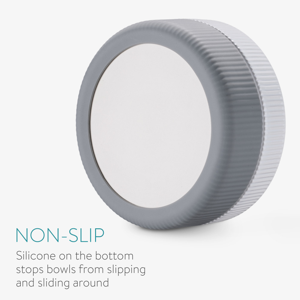 Spodní silikonová část pomáhá udržet tyto misky na místě. Misky by proto měly zůstat na místě, aby pomohly snížit nepořádek způsobený i těmi nejžravějšími domácími mazlíčky.