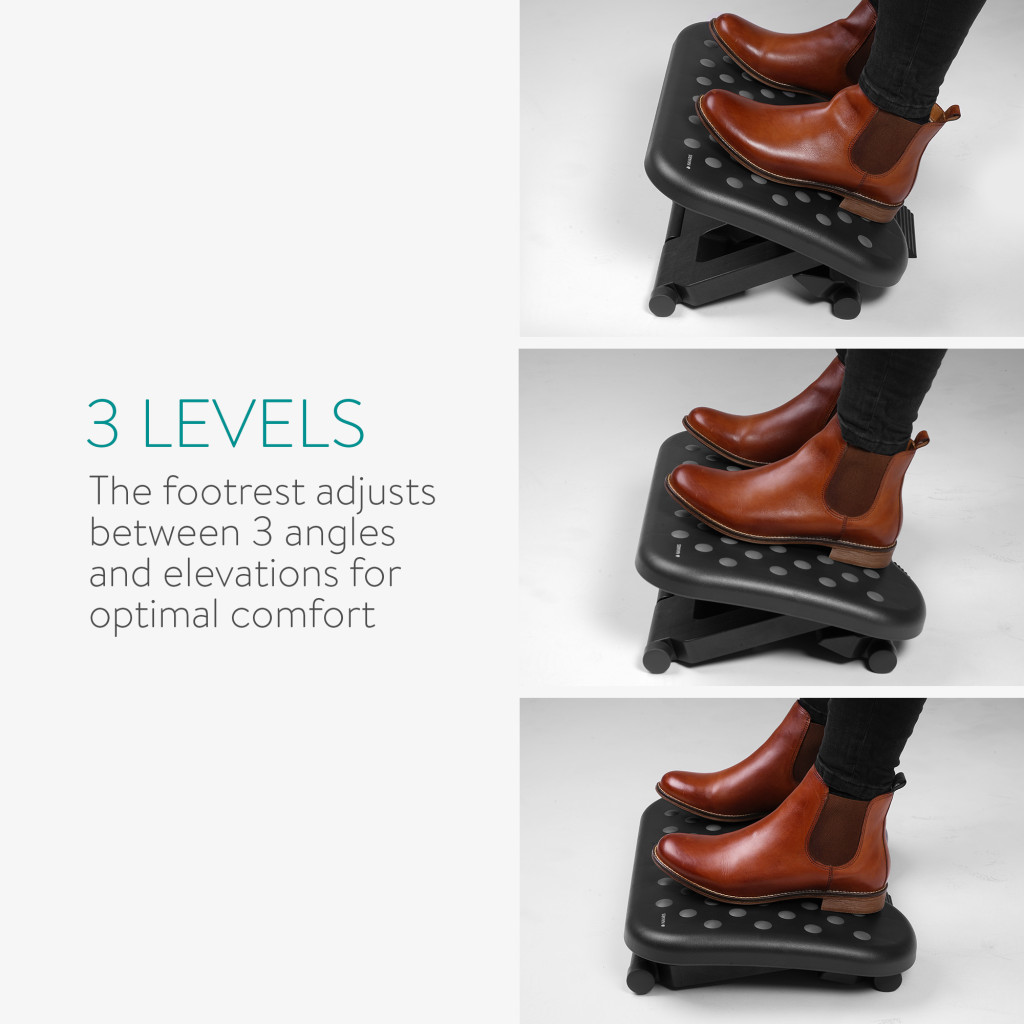 Suport picioare reglabil Navaris, 43.7x33 cm, 3 trepte, 0-25, birou, HIPS, negru, plastic