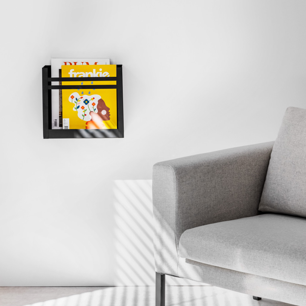 Suport reviste pe perete Navaris, 30x27x11 cm, capacitate 10 kg, negru, metal