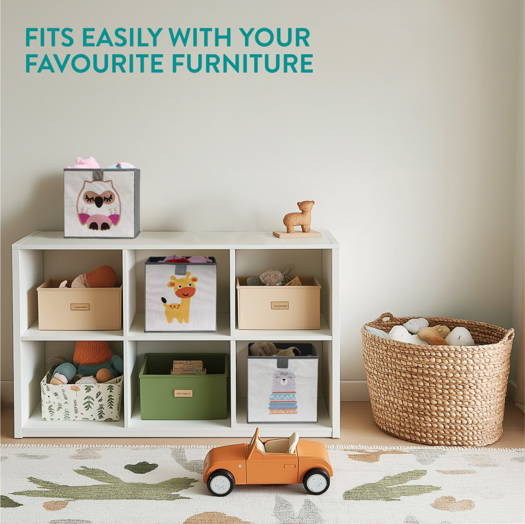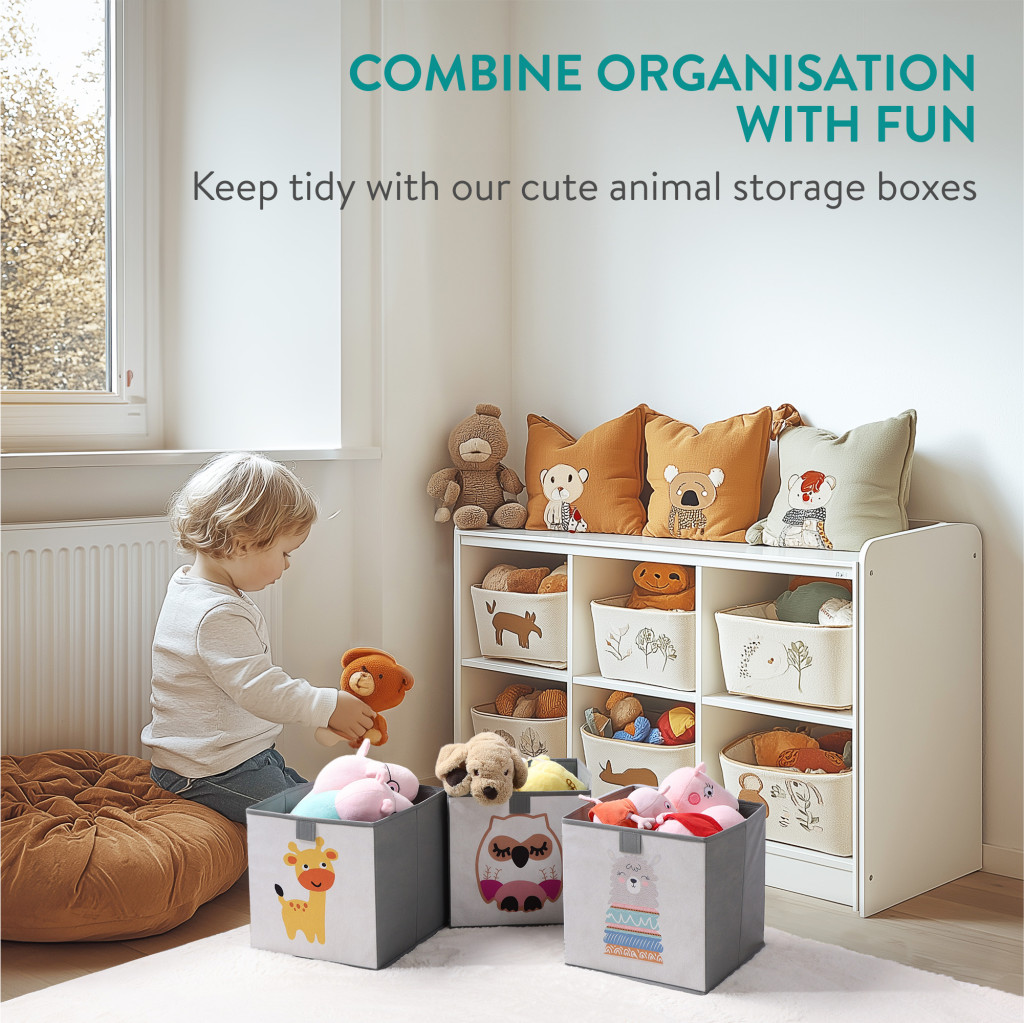 Set 3 cutii depozitare copii Navaris, animale, 28x28x28 cm, pentru camera, multicolor, plastic