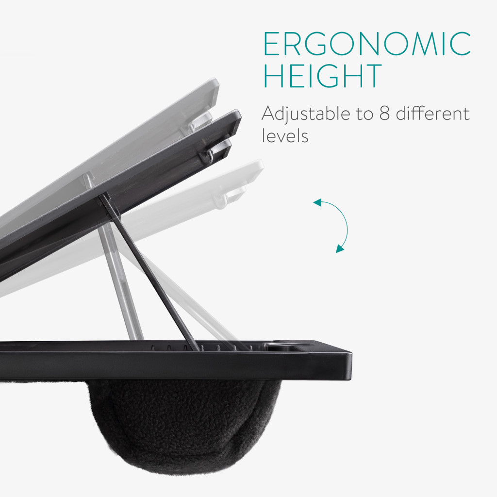 Masa laptop Navaris, reglabila 9 unghiuri, 37.6x28x5.8 cm, perna dubla, negru, plastic/textil