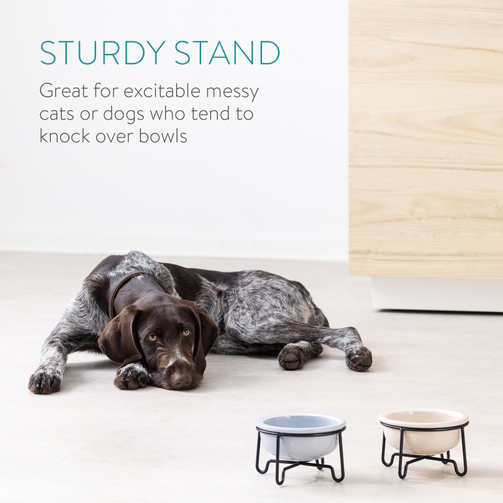 Udržte svého psa nebo kočku šťastného a dobře nakrmeného se sadou misky Navaris s pevným kovovým stojanem. Stojan pomáhá zabránit klouzání misek po podlaze nebo rozsypání jídla.