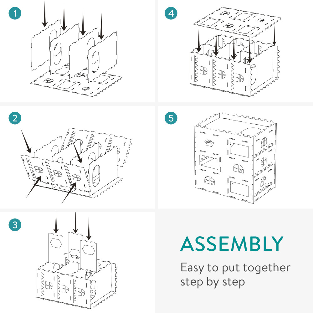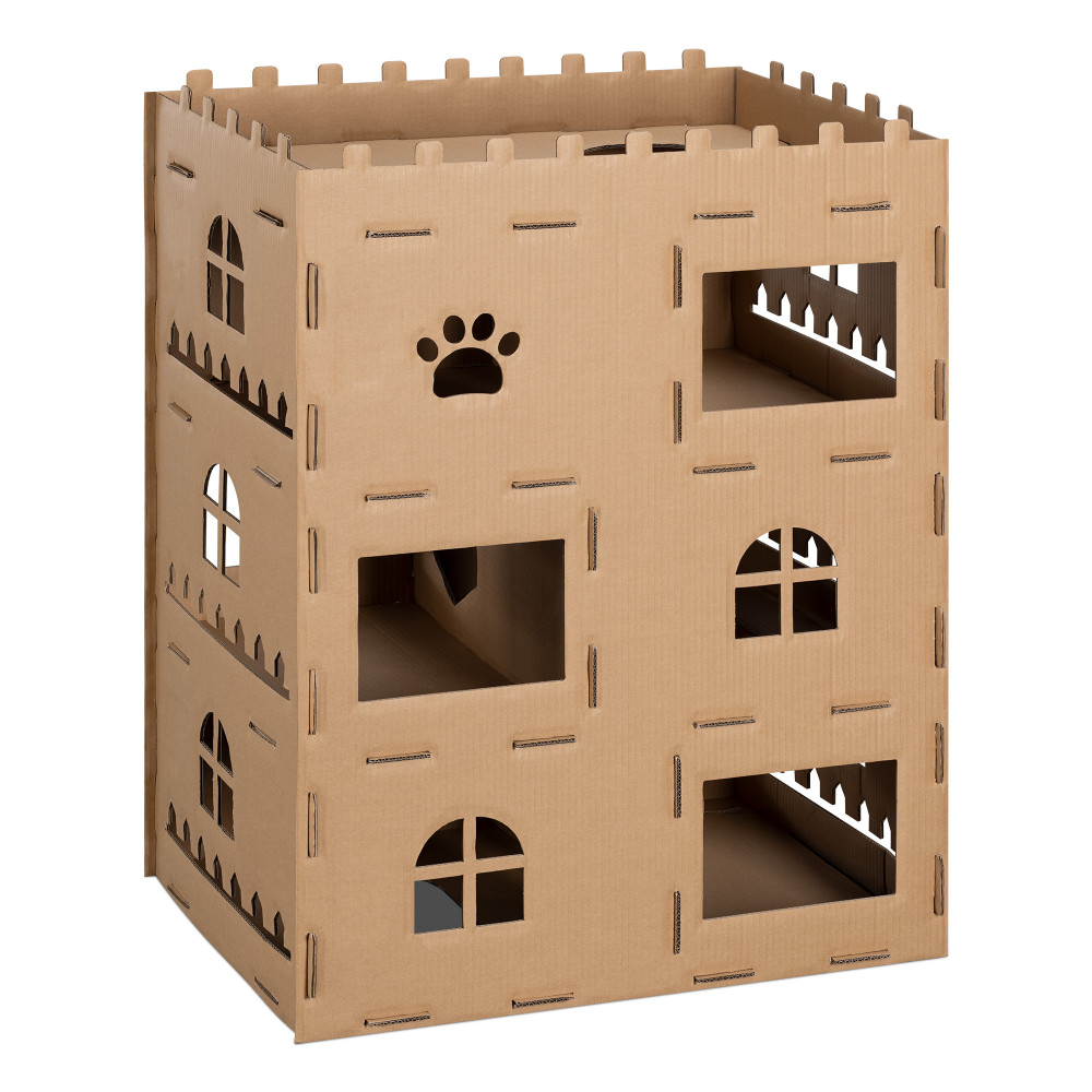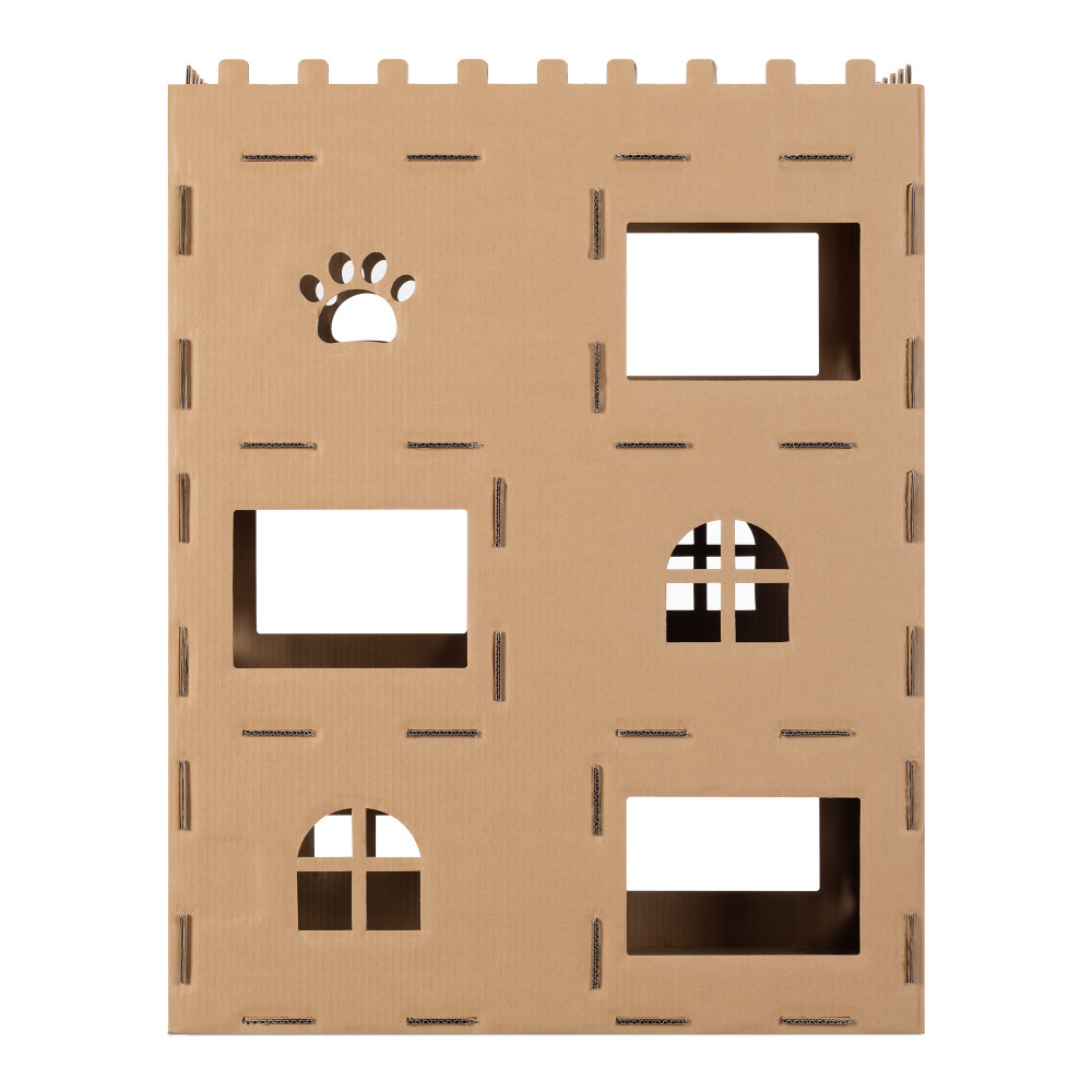 Díky robustnímu provedení a silnému kartonu se nemusíte bát že se tento dům zřítí. Vaše kočka si tak bude svůj nový domov dlouho užívat. Zábavný design: různé tvary, které slouží jako okna, aby se vaše kočka mohla dívat ven (nebo si hrát), jsou pro tento dům pěkným doplňkem. V obývacím pokoji vypadá mnohem lépe než normální kartonová krabice.