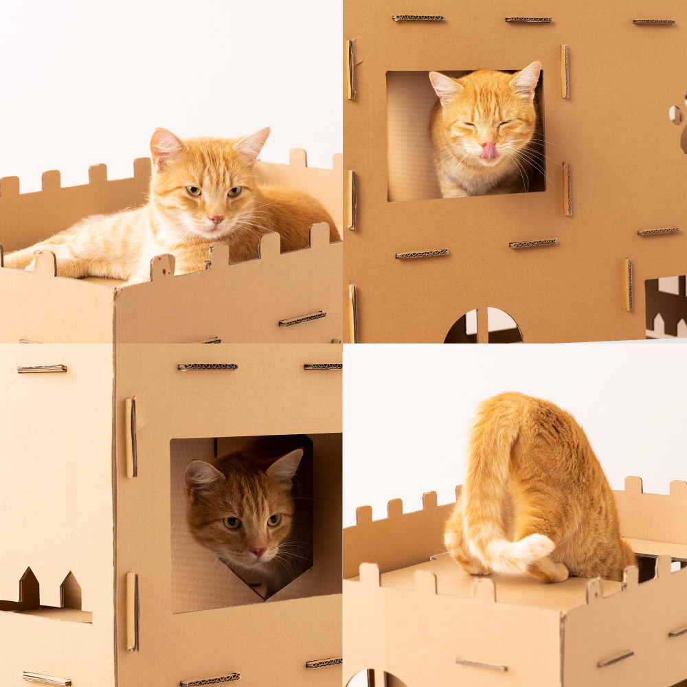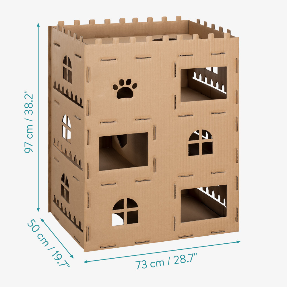 Kočičí hrad se skládá ze tří pater. Proto nabízí dostatek prostoru pro vaši kočku k prozkoumání! Každé patro má otvor, kterým může kočka vstoupit, a okna, kterými se může dívat ven.