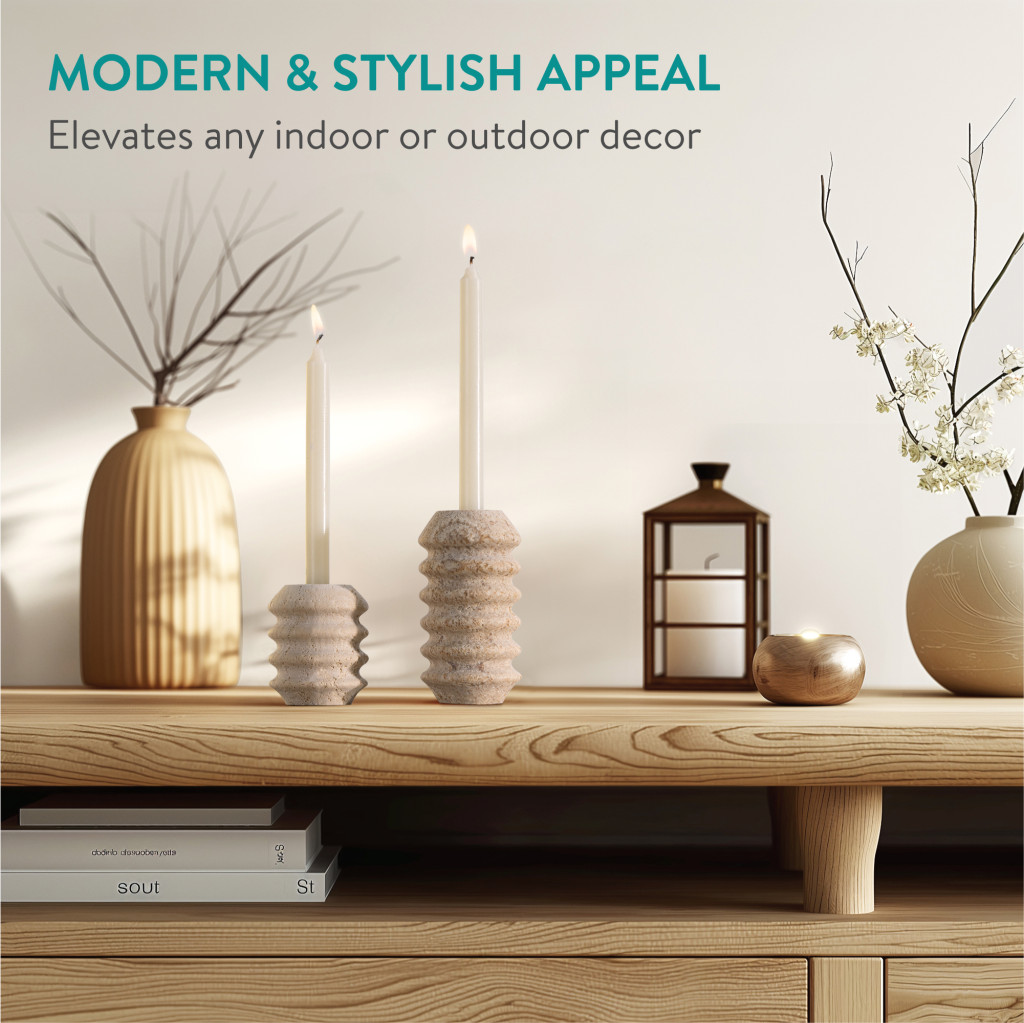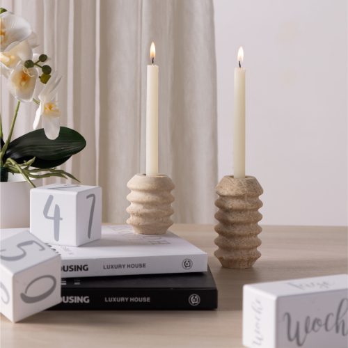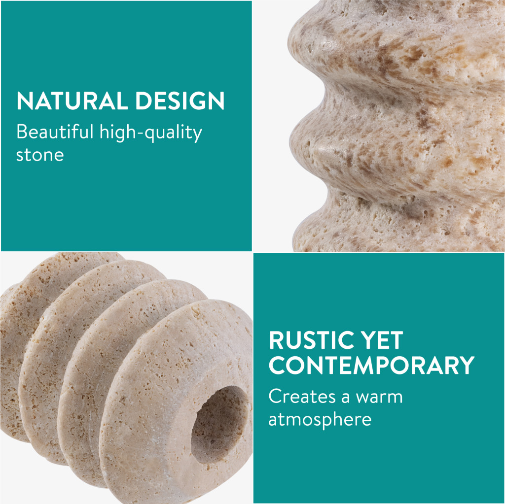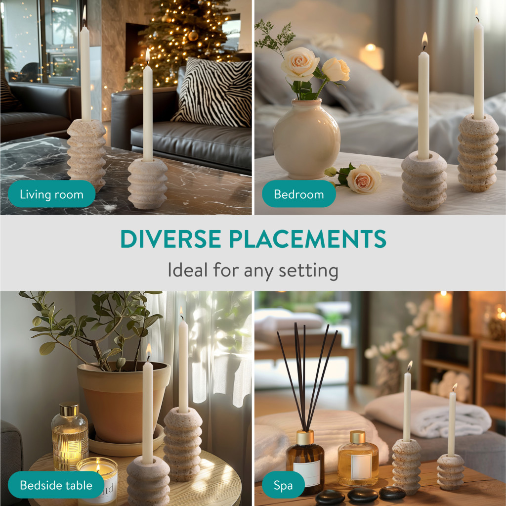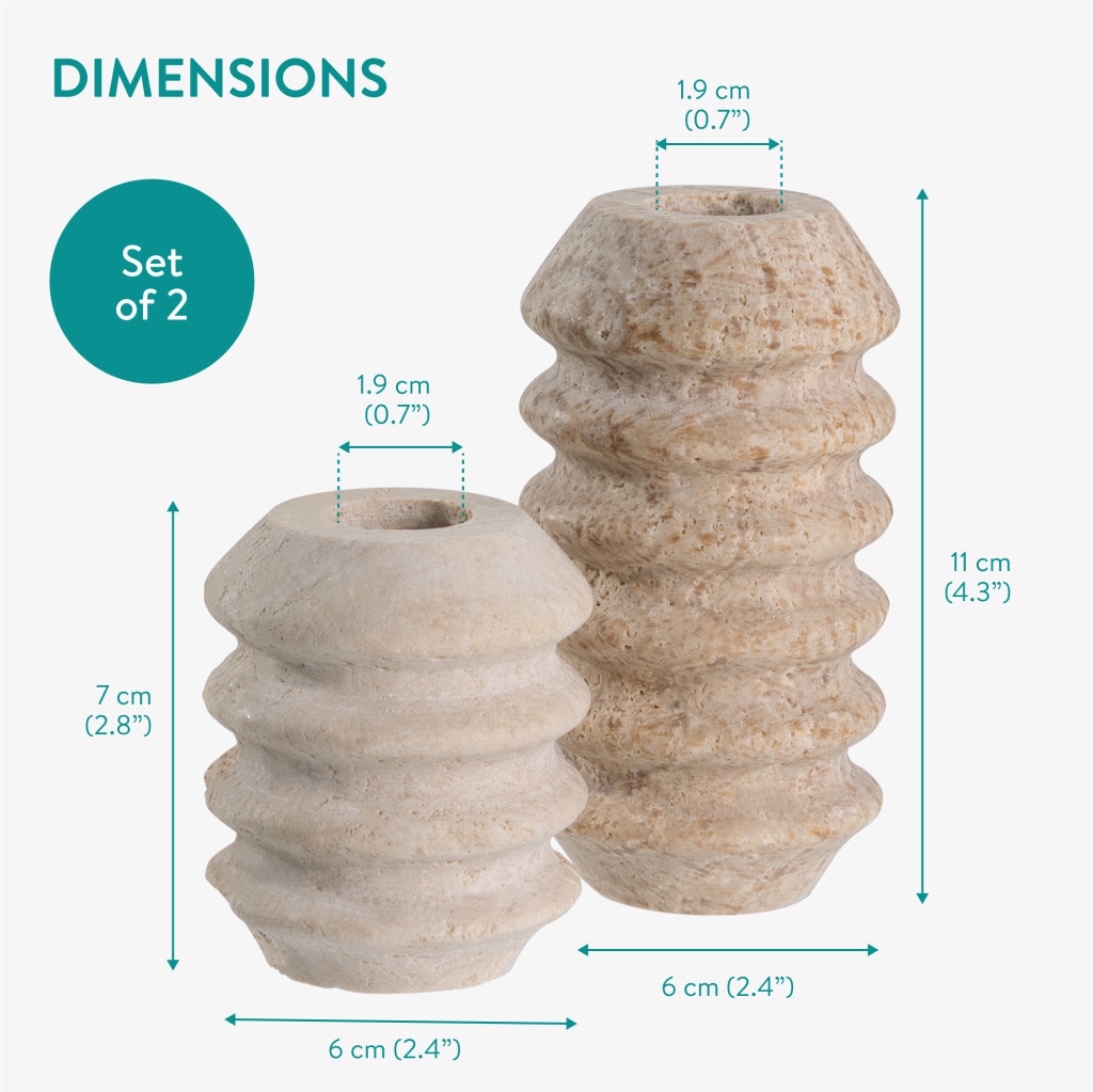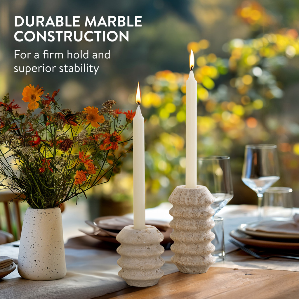 Set 2 suporturi lumanari Navaris, marmura naturala, greutate stabila, alb/gri, piatra naturala