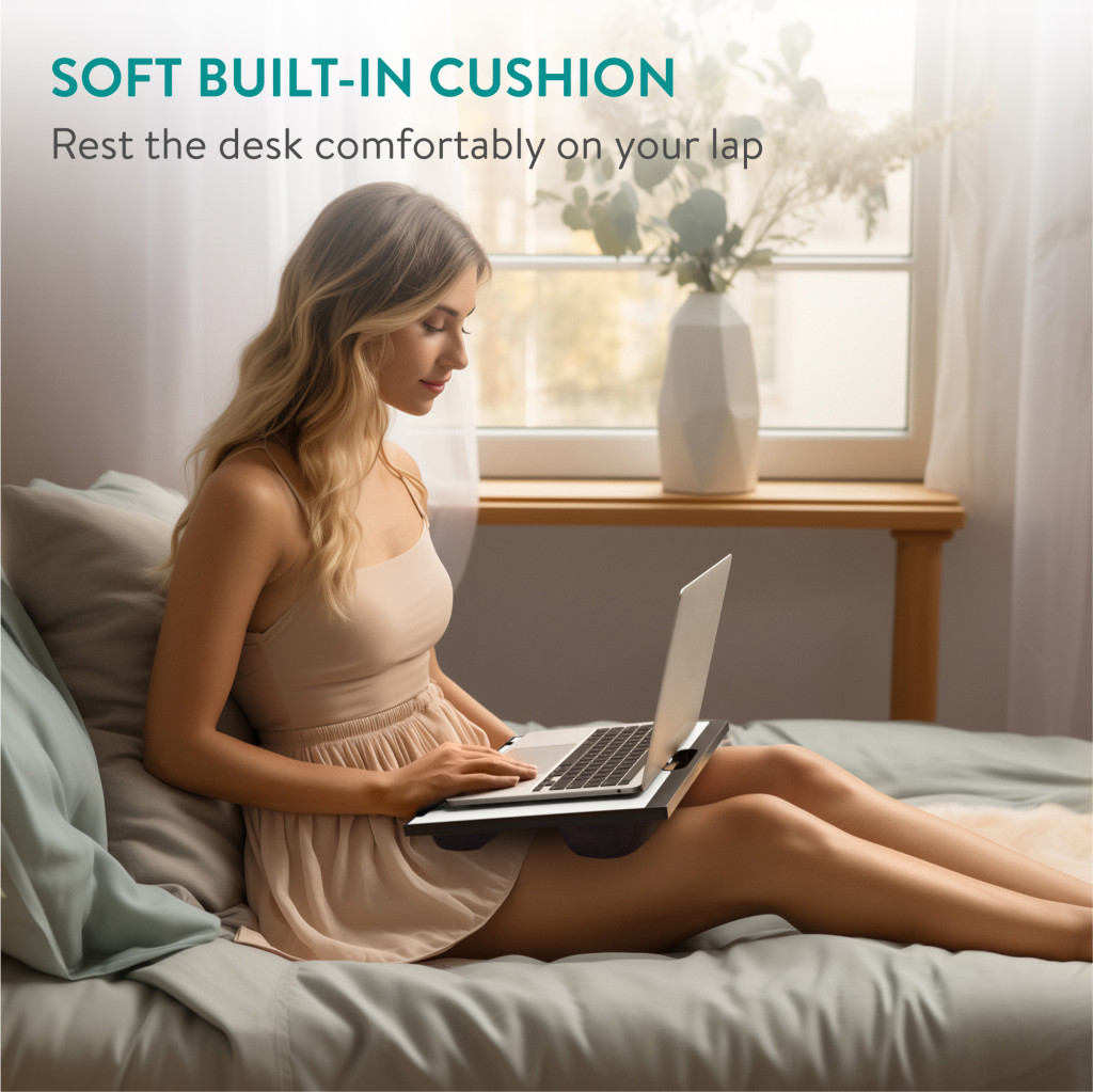 Masa reglabila laptop Navaris, suport 9 unghiuri, pentru birou si acasa, negru, plastic/textil