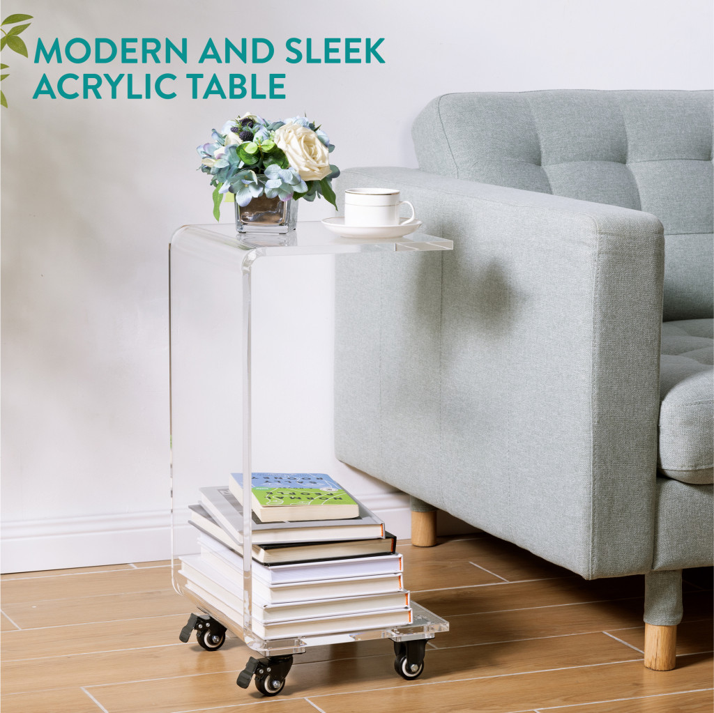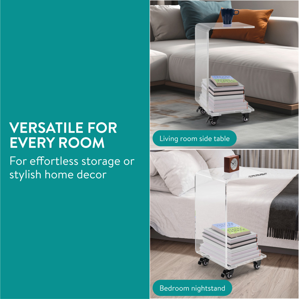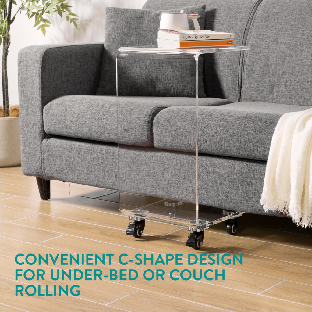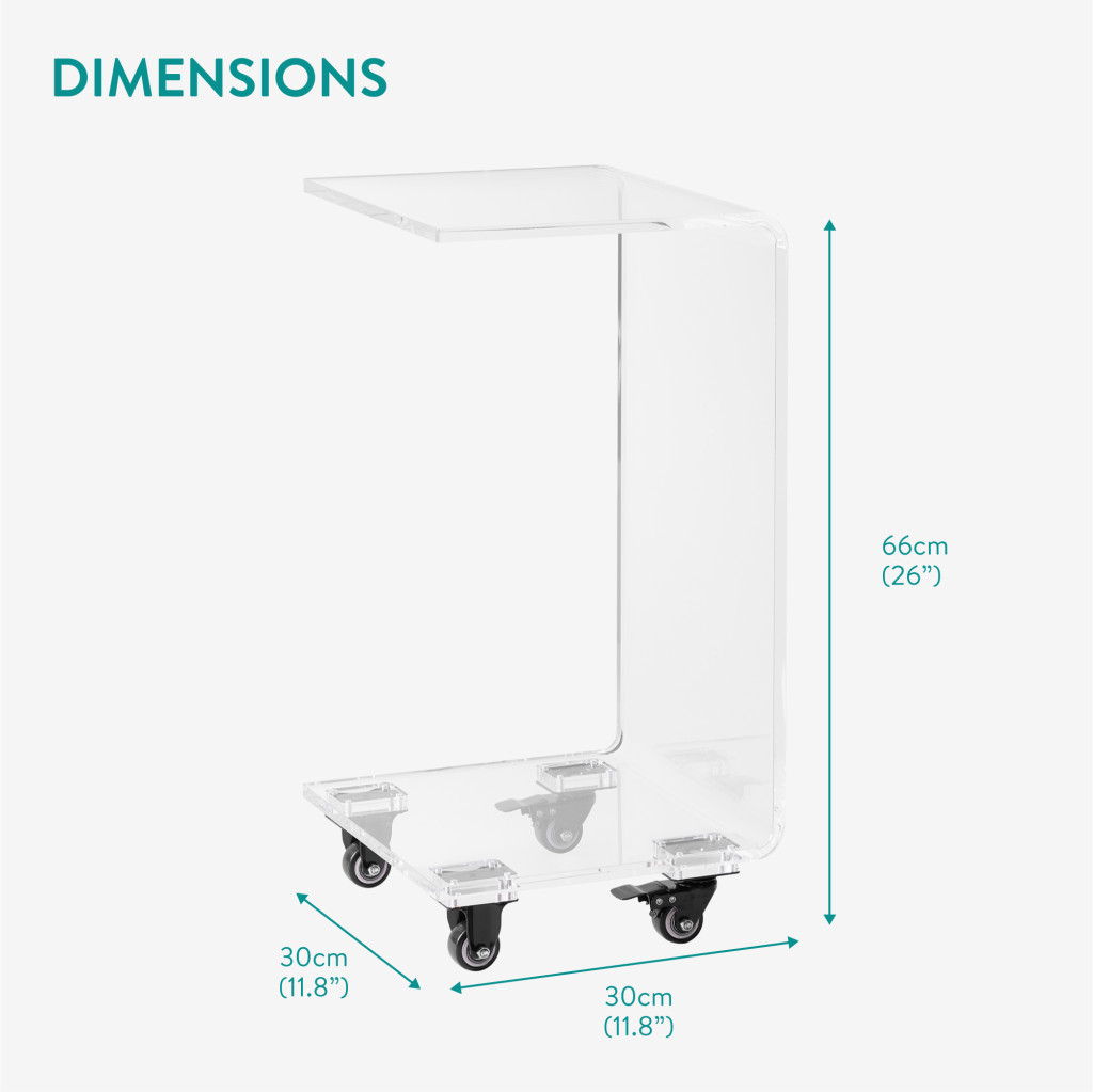 Masa acrilica cu roti Navaris, C-shape, 66x30x30 cm, living si birou, acril, transparent, plastic