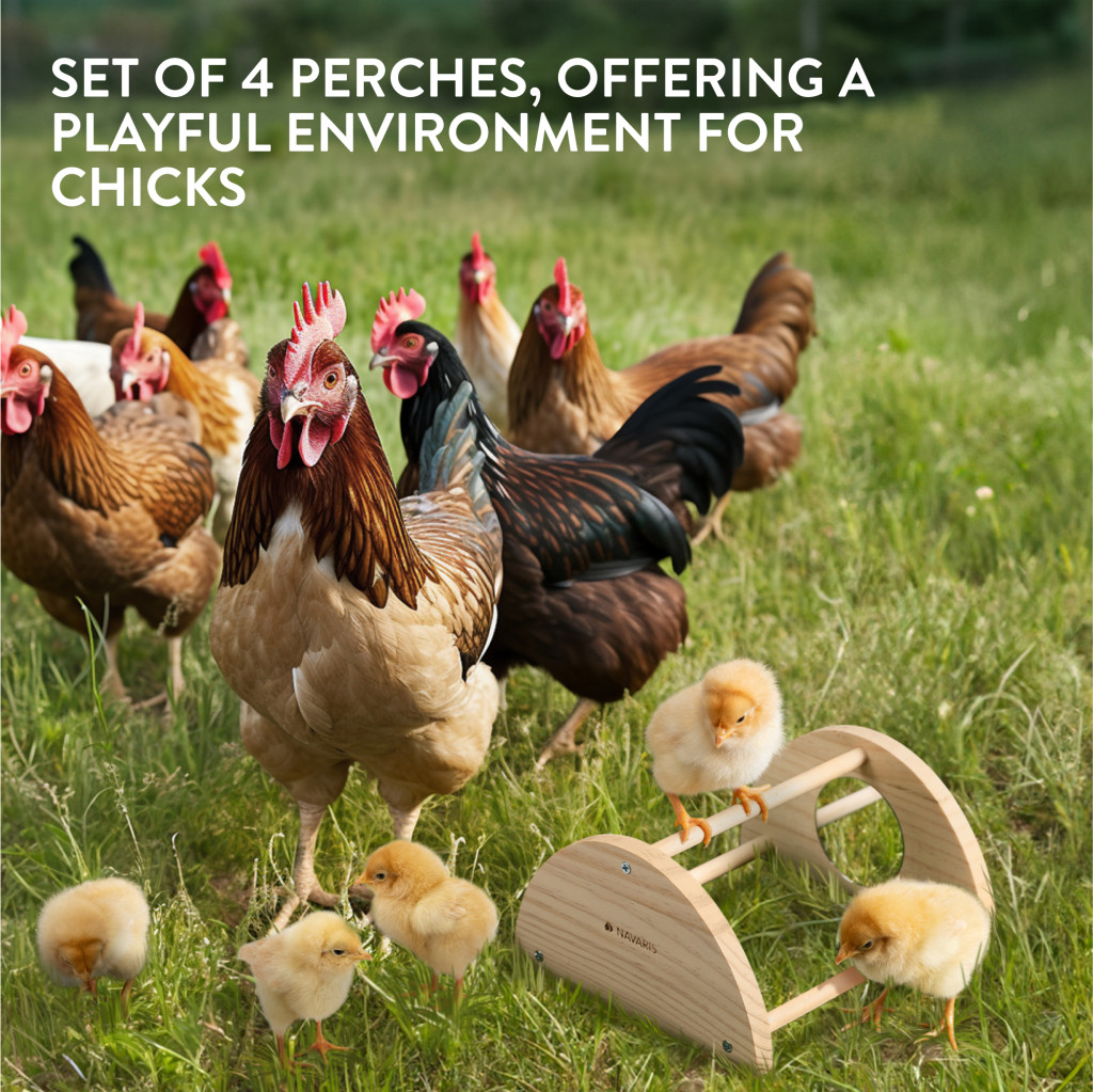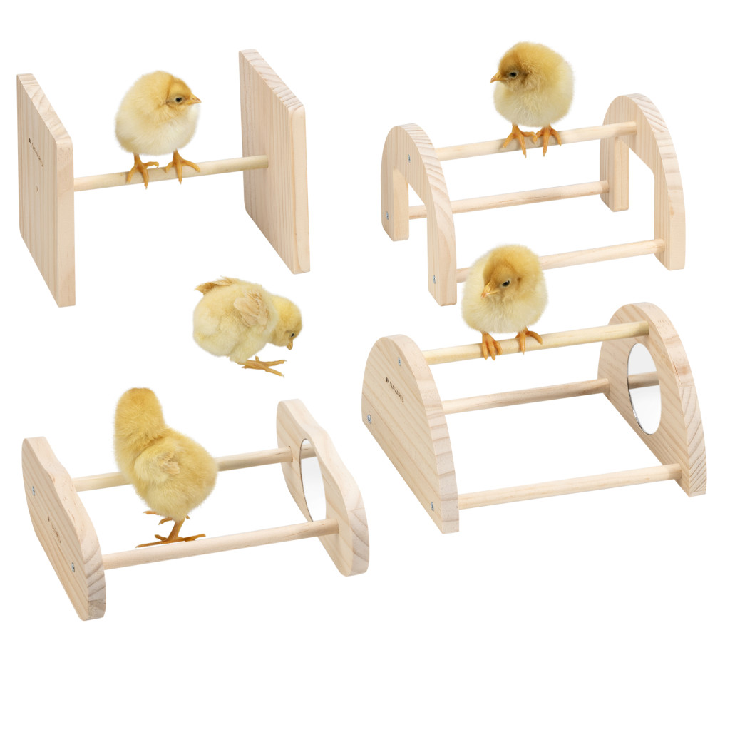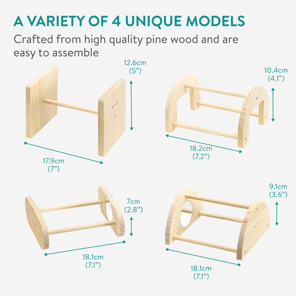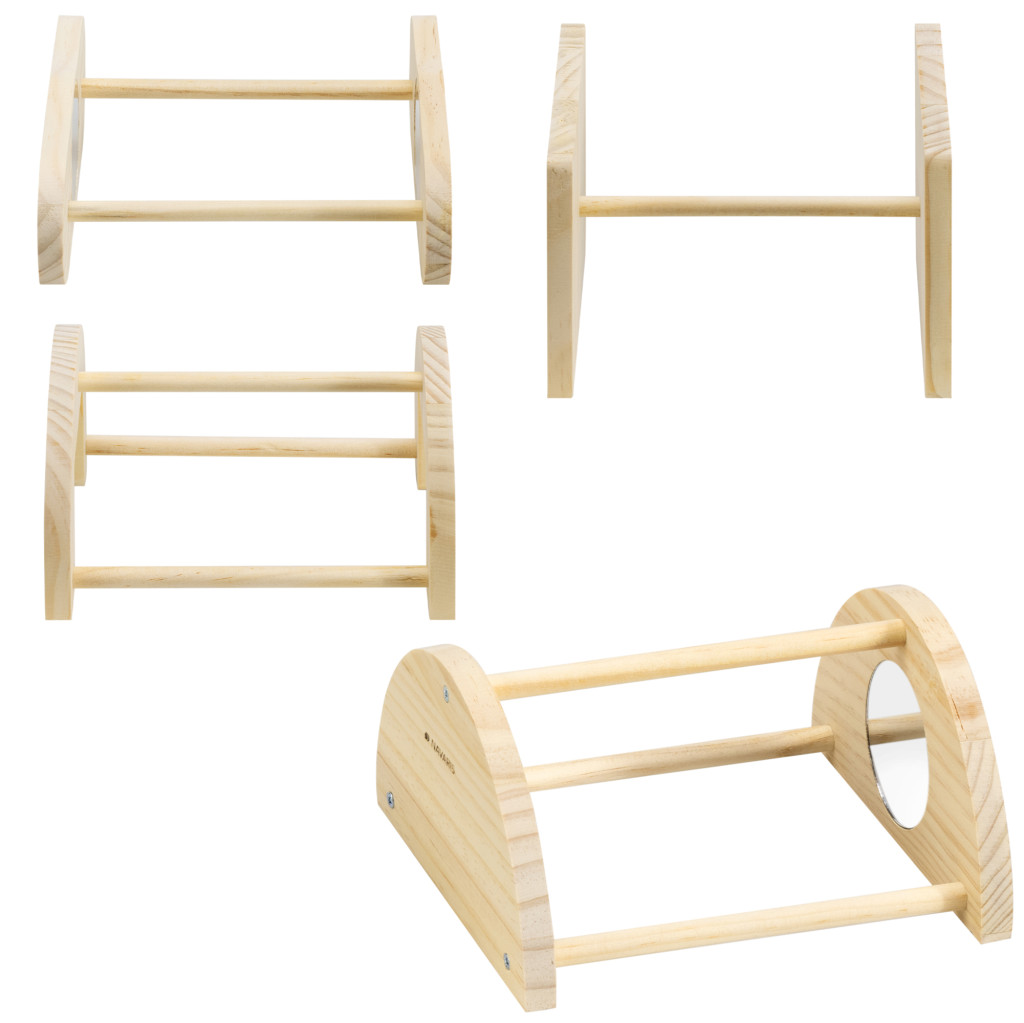 Set 4 suporturi joaca pasari Navaris, cu oglinzi, 18/16.8/14.5/12.7 cm, maro, lemn