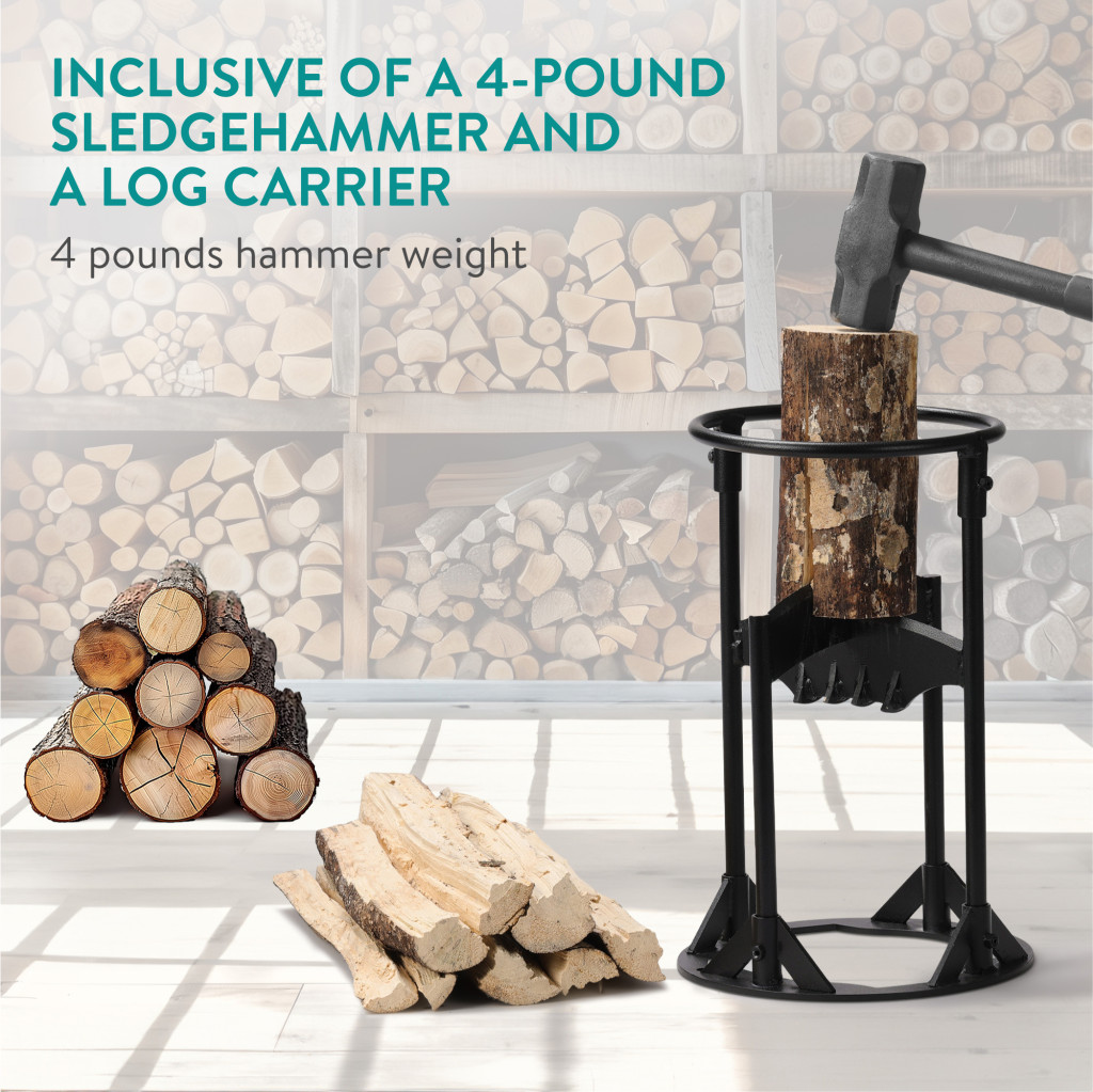 Set accesorii seminee Navaris, despicator lemne cu ciocan si carrier, 20x20x38 cm, maro, otel