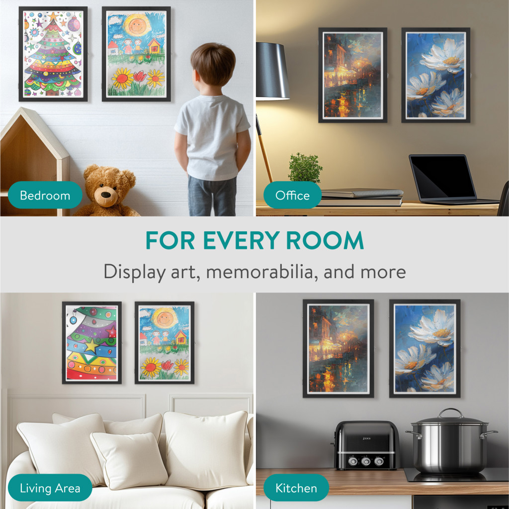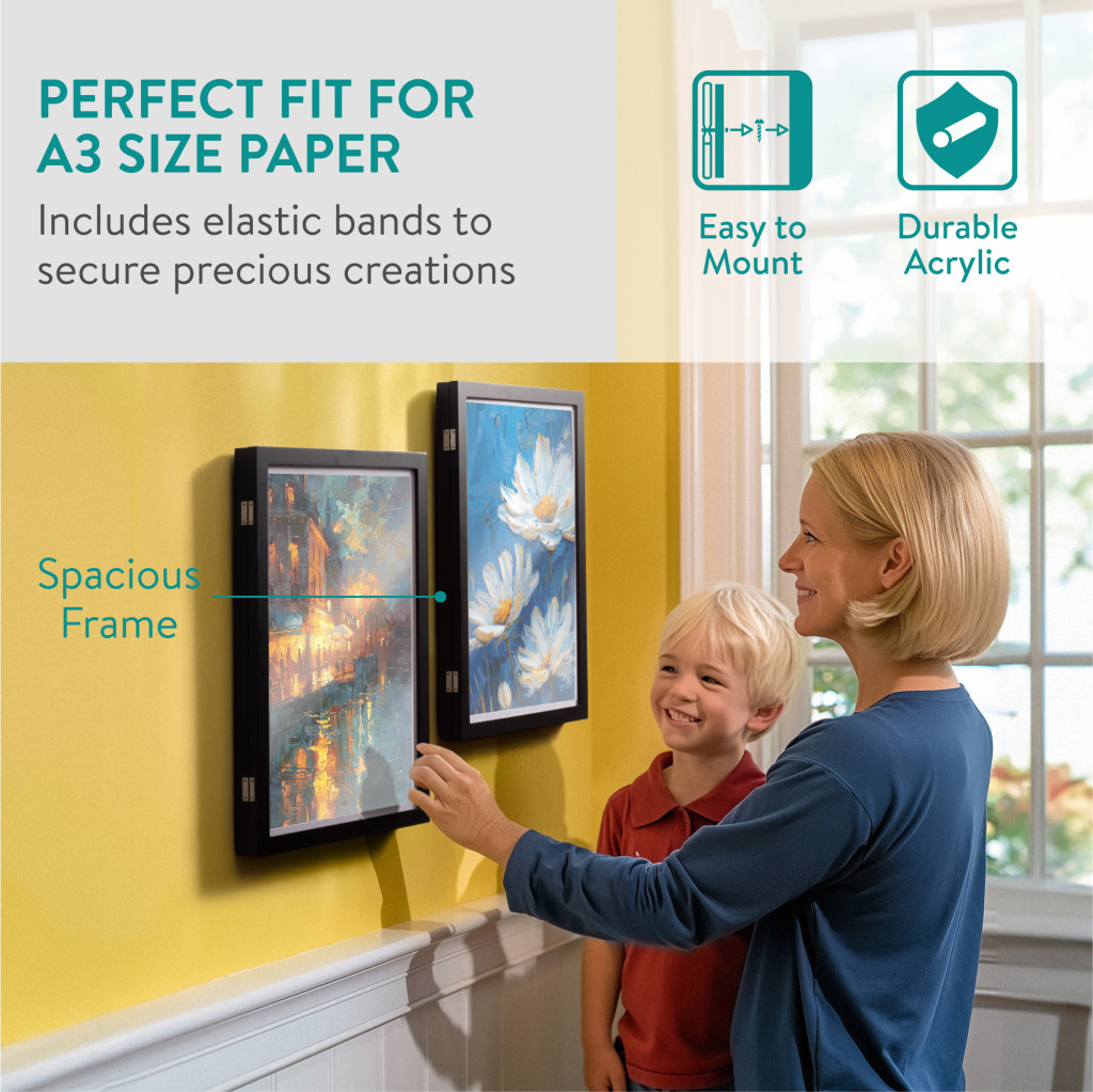 Set 2 rame foto Navaris, deschidere frontala, format A3, schimbare rapida, negru, plastic
