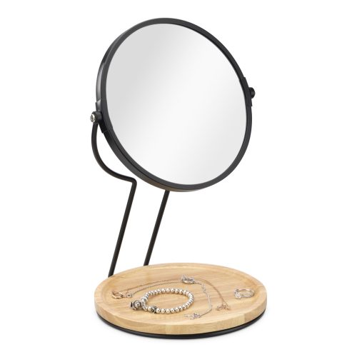 Oglinda cosmetica Navaris cu tava bijuterii, 2x marire, 29x17 cm, masa machiaj, negru, sticla/metal
