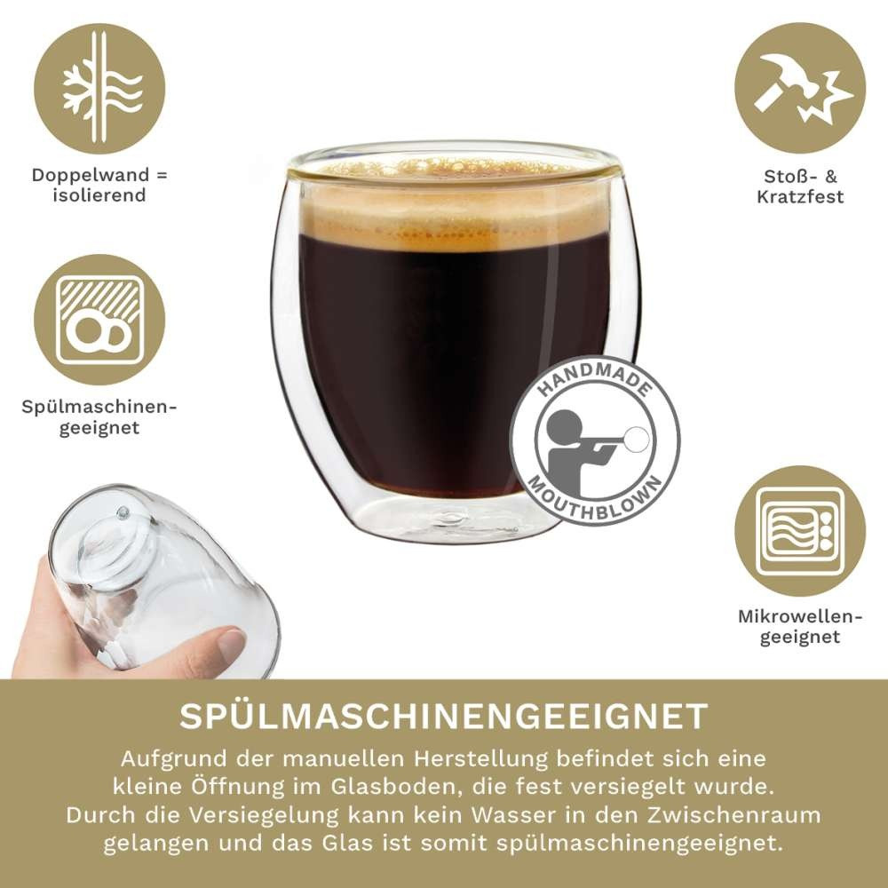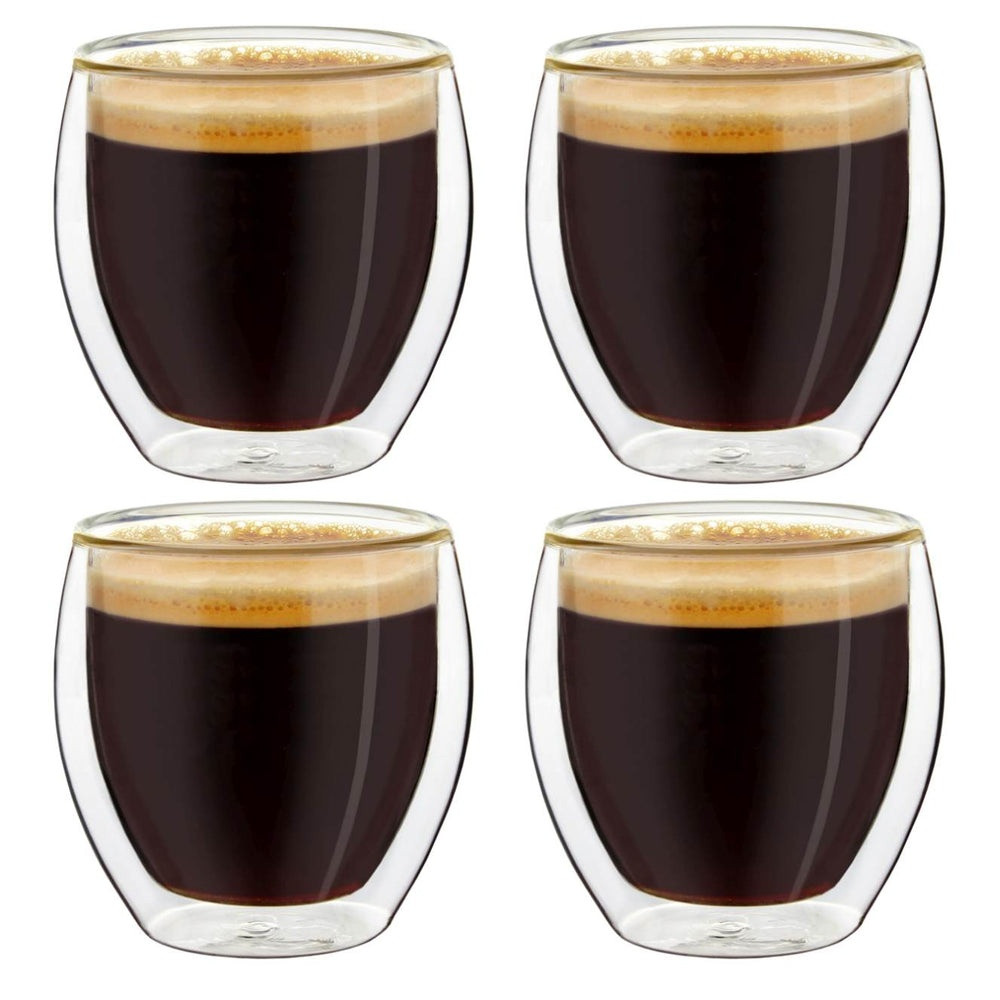 Set 4 pahare espresso termice Creano, 100 ml, sticla borosilicata, perete dublu