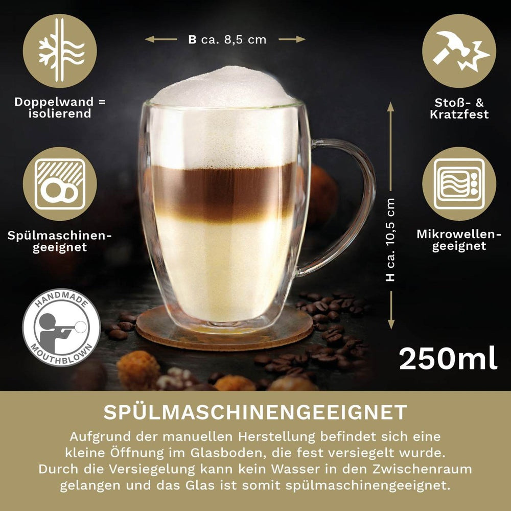 Set 2 cani termice Creano cu maner, 250 ml, sticla borosilicata, perete dublu