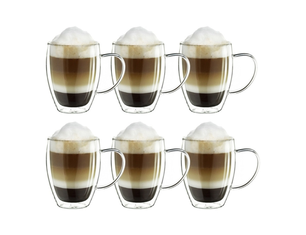 Set 6 cani termice Creano cu maner, 250 ml, sticla borosilicata, perete dublu