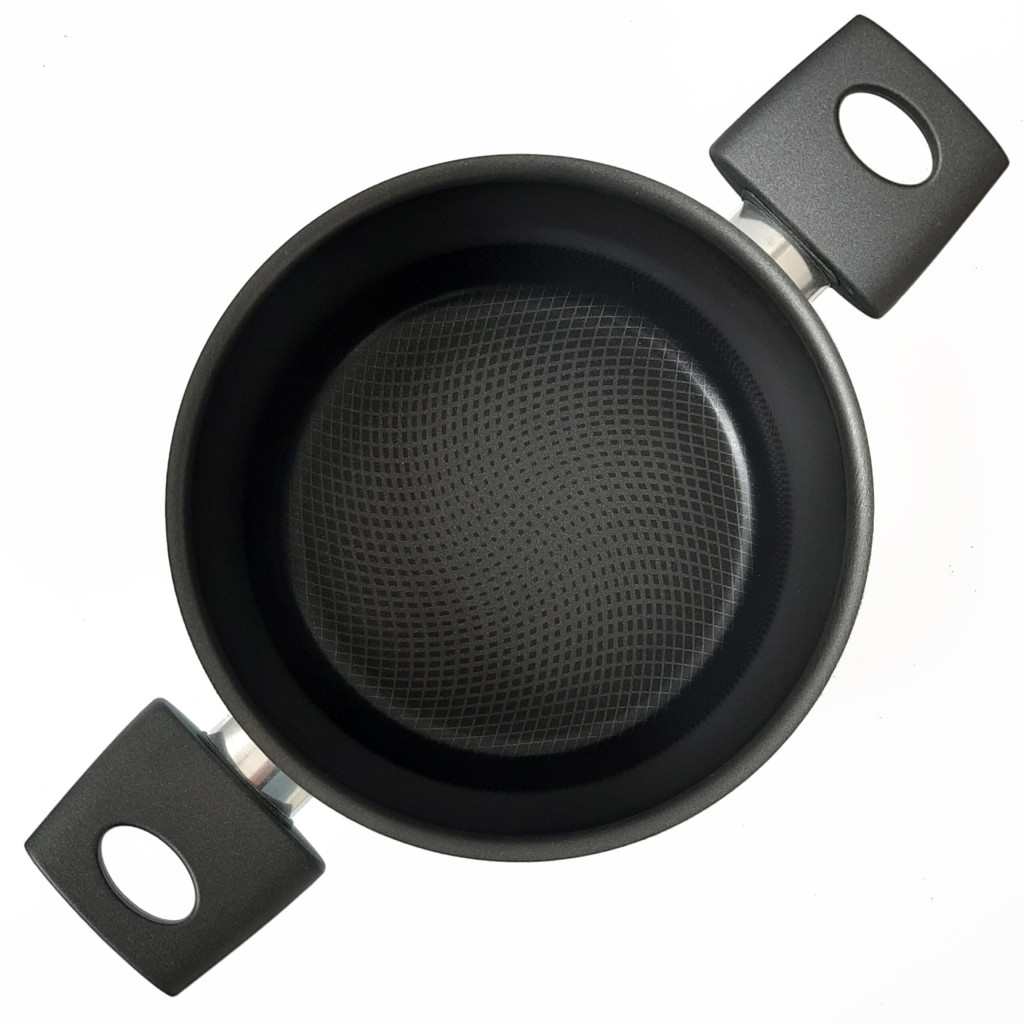 Hrnec ma dno o tloustce 3,0 mm, uzitecne kdyz chces stabilni teplotu: u polevek, dusenych jidel nebo receptu, ktere se nemaji uspet. Navic dve madla pomahaji k bezpecne manipulaci i kdyz je hrnec plny.